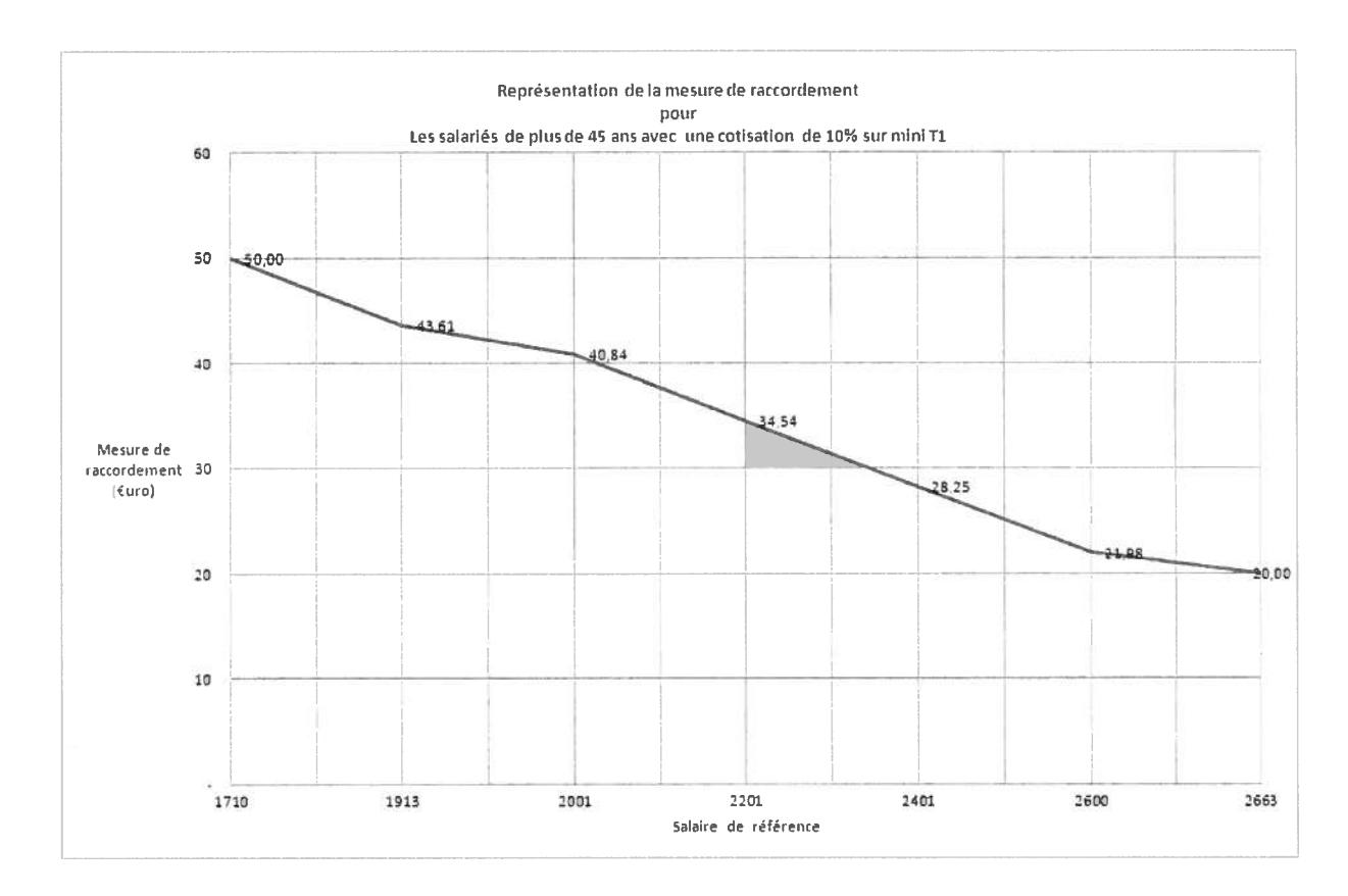 - Pour les salariés qui cotisaient sur une assiette mini PMSS à 10% et dont l'âge est ≥ à 45 ans, des actions particulières seront menées afin de prendre en compte l'application des nouvelles mesures. Pour ce faire, il sera intégré, en fonction du salaire de base des salariés concernés, une somme comprise entre 50 et 20 euros, dans le salaire de base (cf. Annexe 3).
